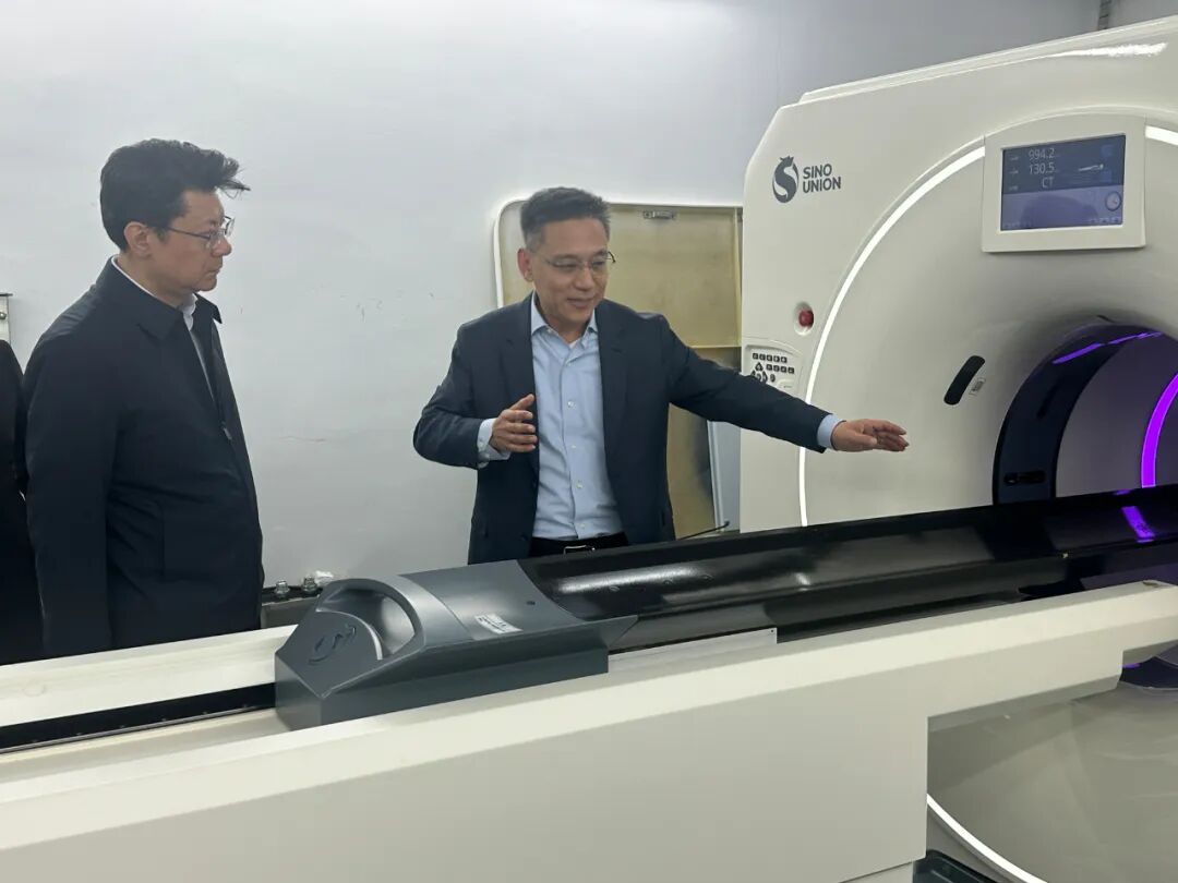 调研期间,王进健深入生产与研发中心,细致了解了赛诺联合PET/CT等高端影像设备智能化生产线。赛诺联合创始人、CEO王涛就公司在分子影像领域实现全面技术自主可控、突破多项“卡脖子”难题以及携手扬州本地医疗机构共同搭建创新示范应用场景等情况,向王进健做了系统汇报。王进健细致询问医用影像设备自主化进程,鼓励公司深耕专科医疗装备领域,着力突破“卡脖子”技术难题,引领健康产业创新发展。